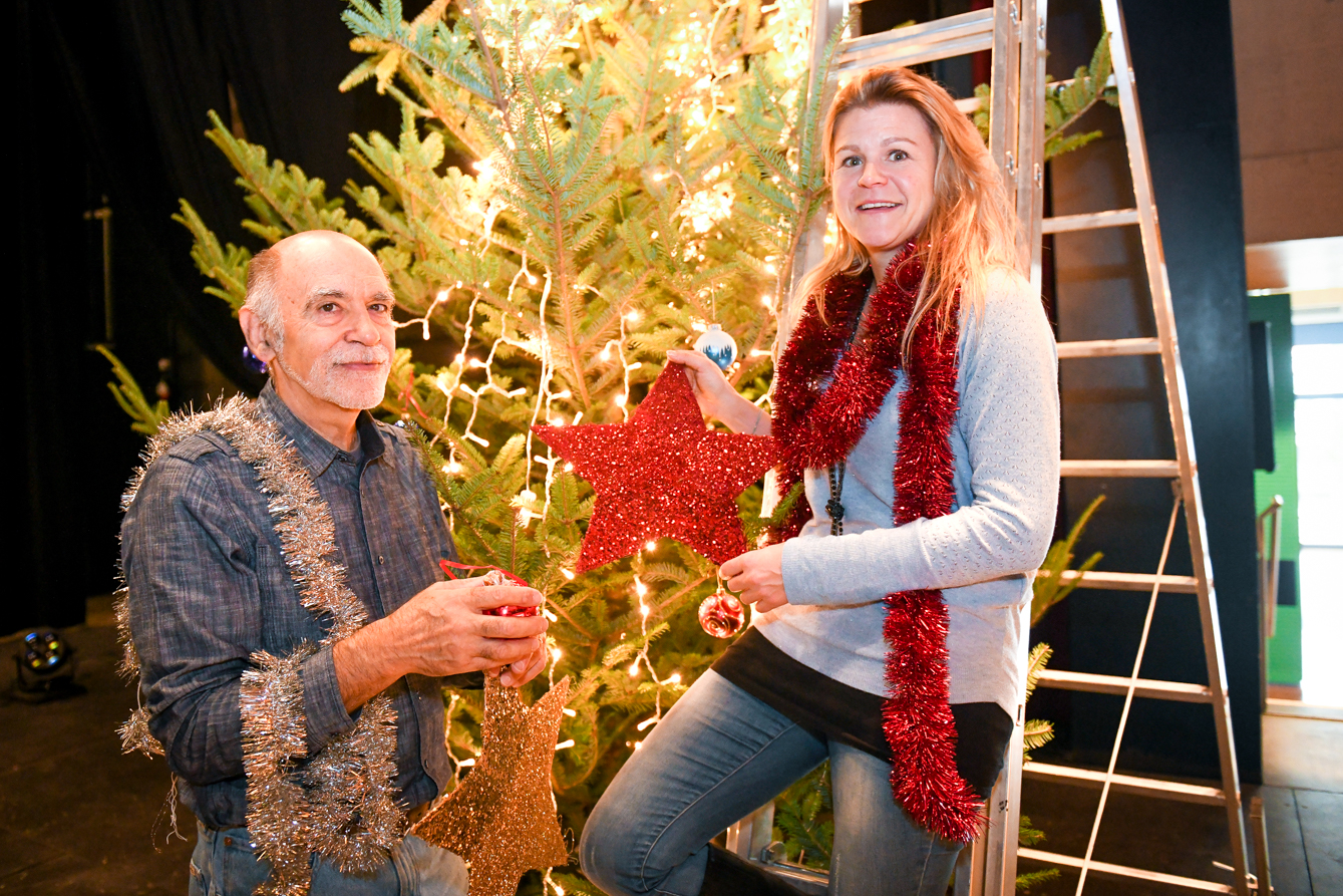 «Les étoiles, il faut les accrocher plus bas, autrement personne ne les verra!» A 10 heures, dimanche matin, La Marive brillait déjà de mille feux. Gilles Pellerin et Nathalie Rapin, coresponsables de Noël Ensemble, étaient sollicités de tous les côtés par la vingtaine de bénévoles qui s’activaient pour décorer la salle en prévision de la fête de ce lundi soir. Depuis quatre ans, ils portent ensemble cette manifestation ouverte à tous les Yverdonnois, le 24 décembre, lui en qualité de bénévole, elle à titre de travailleuse sociale de proximité rattachée au service Jeunesse et cohésion sociale (Jecos) de la ville.