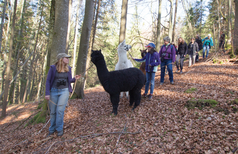 En ce mois d’avril, c’est une sortie à la découverte des oiseaux, en compagnie d’Yves Menétrey, ornithologue pour le Parc Jura Vaudois, qui a été organisée. L’événement a permis d’initier une quinzaine de personnes aux chants des hôtes de la forêt. Mésanges charbonnières, pinsons, grives musiciennes, rouges-gorges… Alors qu’une partie du groupe essaie de repérer les oiseaux qui chantent, l’autre pouffe en voyant l’un des alpagas se rouler dans les feuilles mortes. Difficile de se concentrer lorsqu’une boule de poils s’approche curieusement pour renifler votre visage.