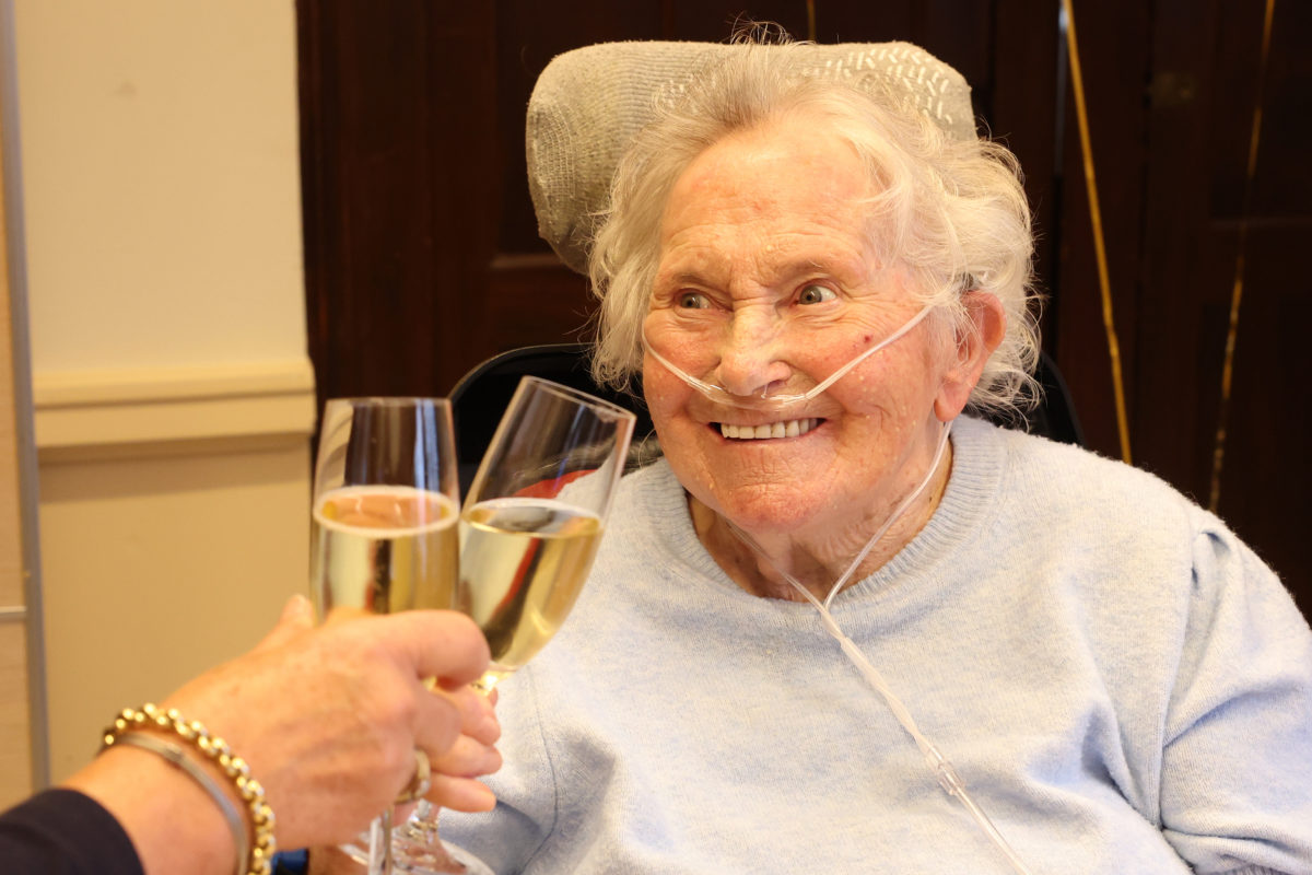 Un grand sourire, les yeux pétillants et entourée de sa famille, Suzanne Thomet a fêté ses 100 ans hier, à l’EMS Le Château à Corcelles-près-Concise où elle réside. Son domicile, en revanche, est toujours à Chamblon, le village où elle a passé sa vie. Entourée de ses enfants, des représentants de la Municipalité chamblonnoise, à savoir le syndic Max Holzer, le vice-syndic Blaise Nicole et le municipal Jonathan Marendaz, ainsi que le préfet Fabrice de Icco, elle a passé ce cap, flûte de champagne à la main dans un décor de Saint-Valentin.