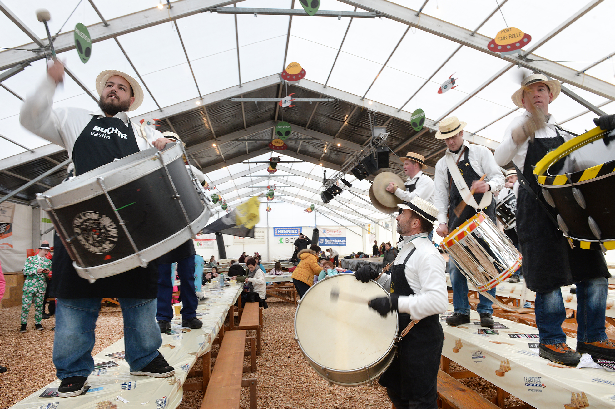 Au village, la cantine montée près du terrain de football annonce l’ambiance: ce sera boisson à gogo, bière à flots, et rigolades à profusion sous la tente. S’il y a des rivalités entre Jeunesses, et entre tambours, ça ne se remarque pas. L’ambiance est bon enfant et on voit que les «anciens» ont tout autant de plaisir à rouler du tambour et à fêter que les jeunes encore actifs au sein des jeunesses!