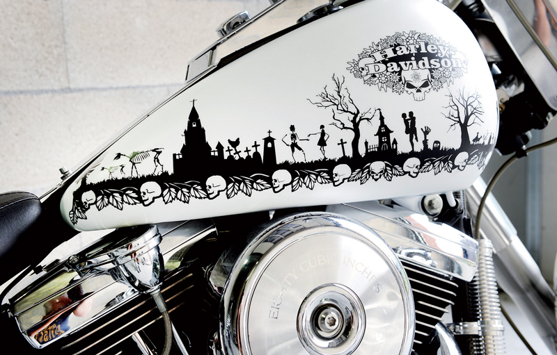 Voilà 37 ans que le Cheyrois se plaît à customiser casques, motos et autres pièces de collection, que ce soit pour de parfaits inconnus ou pour des célébrités (voir ci-dessous). Près de quatre décennies au service de son métier que «Dédé» a voulu célébrer en mettant sur pied une exposition, le week-end dernier, à Champagne. «Initialement, je voulais attendre le 40e anniversaire de l’entreprise, lâche l’acharné de travail. Mais mes ennuis cardiaques, survenus il y a plus de deux ans, ont eu l’effet d’un électrochoc. J’ai décidé d’avancer les festivités. On ne sait jamais de quoi notre vie sera faite.»
