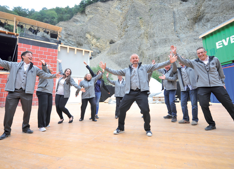 L’ancienne carrière des Rochettes connaît une inhabituelle effervescence. C’est, en effet, la dernière ligne droite pour toute l’équipe de la comédie théâtrale et musicale «Claquettiste». A une semaine de la grande soirée de gala, mardi, qui donnera le départ de seize représentations en plein air, dans ce lieu emblématique de l’histoire de Baulmes. «Au niveau de l’infrastructure, il ne nous reste plus que quelques détails à régler », se réjouit Grégory Perusset, le président du comité d’organisation, au pied de l’imposante tribune de 600 places montée pour l’occasion. Quant au volet artistique, les cinquante artistes (danseurs, comédiens, choristes et musiciens), emmenés par Fabrice Martin, champion du monde de claquettes, répètent tous les soirs sur le site, depuis le mardi 2 août. Une grande générale est encore prévue ce dimanche.