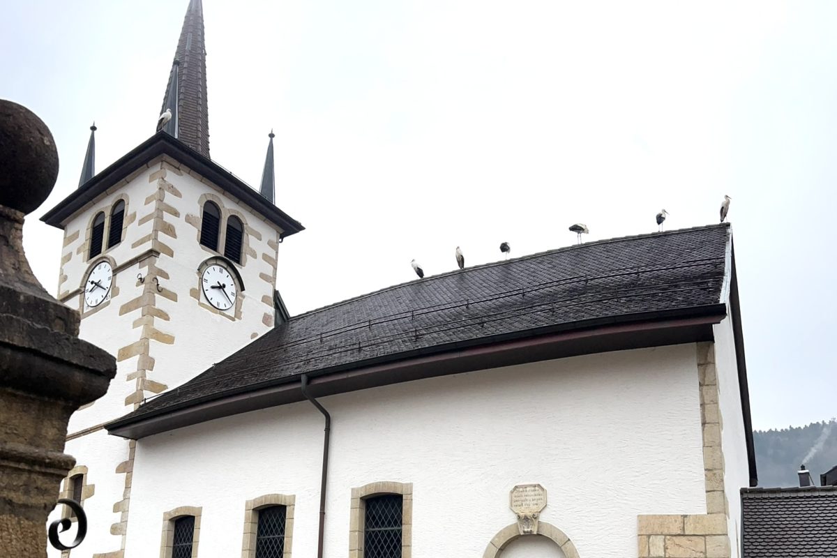 Une apparition très inattendue s’est produite tôt le matin à Vaulion… De nombreuses cigognes s’étaient perchées sur les toits !