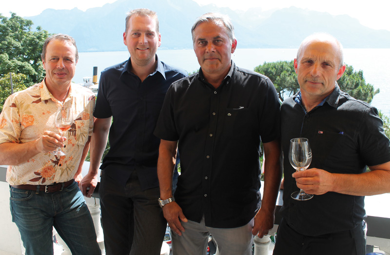 De g. à dr.: Patrick Keller (Cave des 13 Coteaux), Benjamin Morel (Cave du Château de Valeyres), Eric Schopfer (domaine Le Champagnoux, appellation Bonvillars) et Olivier Chautems, secrétaire du comité de promotion des Côtes de l’Orbe.