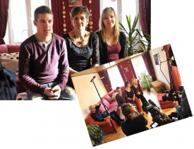 Avec une assurance sans doute liée à ses nombreuses montées sur les planches à la revue de Thierrens, Myriam lance les débats. La musique accompagne sa vie depuis toute petite. En guise d’illustration, elle cite ses nombreuses participations à des choeurs, puis, plus tard, à des groupes, avec ou sans son mari. Son fils Vincent, 21 ans, souligne la place importante de la musique dans l’éducation qu’il a reçue. Un brin intimidée, Lucie, 19 ans, abonde dans son sens : «J’en écoute tout le temps dans la voiture ou sous la douche», ajoute-t-elle. La chanson du trio, avec Vincent à la guitare, sera filmée dans une autre pièce. Comme pour apporter sa contribution à la démarche familiale, Ficelle, sortie de la maison, aboie en fin de prestation.