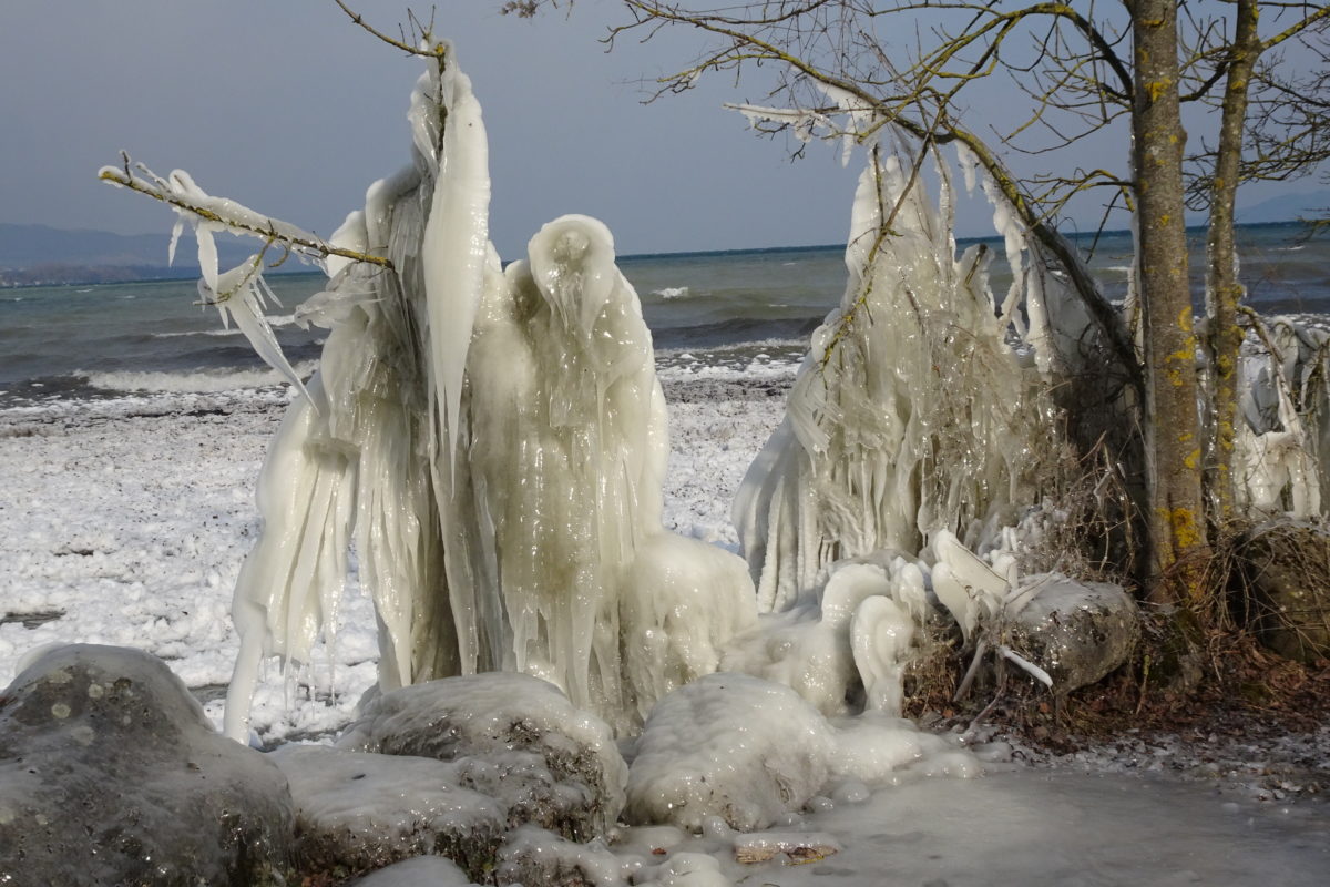 Entre Thièle et Mujon, la rive du lac a fait l’objet de remblaiements dans les années 70, ajoutant une grande surface de terrain pour une arborisation naturelle formant un écran contre la bise parfois violente pour les habitants du quartier. Si l’hiver est quelque peu rigoureux, cette bise peut aussi engendrer d’admirables sculptures de glace… En été, cet empiétement sur le lac offre la possibilité de jolies promenades et un terrain de jeu pour les enfants.
