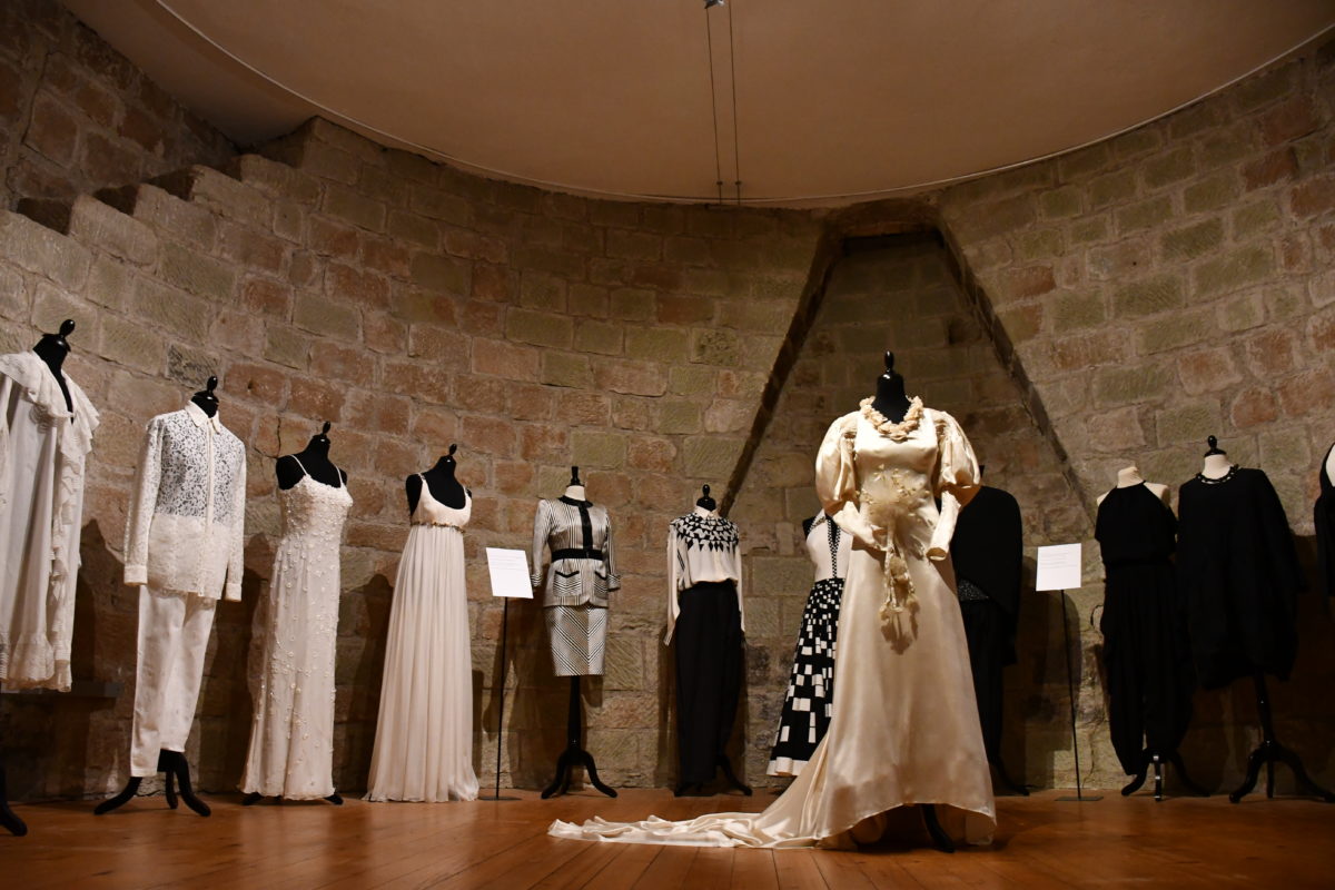 Deux salles, deux couleurs, une atmosphère imposante; du point de vue de sa taille, l’espace dédié au Musée suisse de la mode (ou MuMode pour les intimes), cantonné à une petite partie du château d’Yverdon, ne paie pas de mine. Mais la salle ronde aux pierres apparentes dans laquelle se tient actuellement la mini-exposition Tout blanc tout noir mérite bien son nom de «vitrine», car elle exprime avec puissance le potentiel de la collection du MuMode. En quelques pas, le visiteur se retrouve entouré d’un dégradé bicolore de superbes pièces de couture qui l’enveloppe d’une ambiance magique et qui ne lui donne qu’une envie: en voir plus.