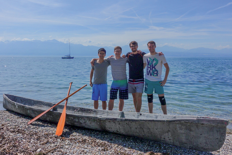 Les quatre Nord-Vaudois de l’équipe avec (de g. À dr.): Sacha Laffely (Vallorbe), Damien Scantamburlo (Yverdon-les-Bains), Benoit Corday (Valeyres-sous-Montagny) et Adrien Jeckelmann (Vugelles-La-Mothe). Avant d’affronter une cinquantaine d’universités sur le Fühlinger See, les quatre étudiants se sont entraînés avec leur team sur le lac Léman.