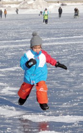 La foule des amoureux du grand air a envahi la baie du Pont, toute gelée
