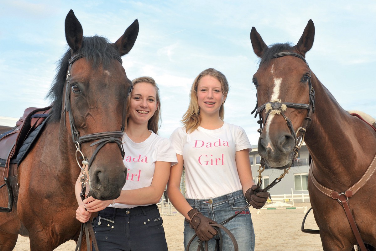 Les «Dada girls» (elles ont remporté ce t-shirt lors d’un concours disputé ensemble) Fiona Michoud (à g.) et Charlène Grin, avec leurs protégés Petrouchka du Don et Ungaro du Roc : l’avenir du saut, dans la région.
