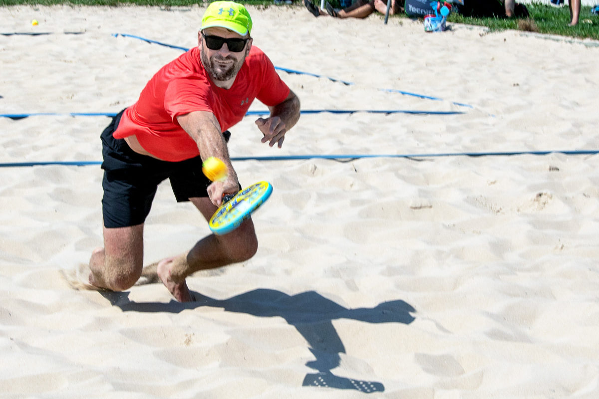 Sur un terrain de beach-volley, où le filet est dressé à 2,43 m du sol, Martin Laciga, sa puissante carrure et son presque-double mètre (1m95) en imposent. Mais lorsque la hauteur du filet passe à 1,70 m, que son outil de travail devient une raquette et que la discipline se nomme beach tennis, le Fribourgeois a véritablement de quoi effrayer ses adversaires. Samedi, celui qui a presque tout gagné au côté de son frère Paul durant sa carrière de beach-volleyeur s’est d’ailleurs hissé en demi-finales du premier des deux tournois internationaux organisés par le Beach Tennis Nord vaudois à la plage d’Yverdon-les-Bains.