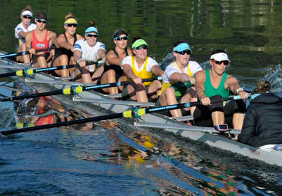 Le bateau à moteur passe d’un côté du huit barré, puis de l’autre. Les deux hommes observent chaque détail. La barreuse, Elizabeth Patrick, donne de la voix : ça pousse fort, désormais. Sur le visage de ses coéquipières, on lit l’exigence de la séance. Sur leurs biceps, la perspective de parties de bras de fer délicates si l’envie nous prenait de les défier. On évitera. D’autant que leur journée n’est pas finie.
