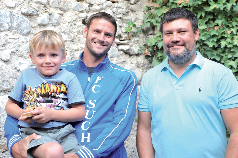 L’entraîneur Philippe Badoux est venu chercher la statuette remportée par le FC Sainte-Croix/ La Sagne avec sa fille, Laetitia.