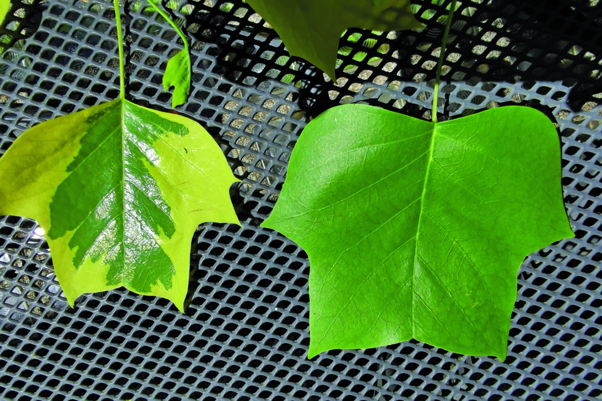 Dans le groupe des arbres d’une certaine dimension, seuls le tulipier et l’érable ont des variétés à feuillage panaché. Le tulipier, qui peut atteindre une hauteur de 20 à 30 mètres, a une variété aux feuilles vert et jaune, qui ne dépasse pas la hauteur de 20 mètres. Quant aux érables, c’est une variété d’érable plane qui présente une panachure blanche, plutôt discrète.