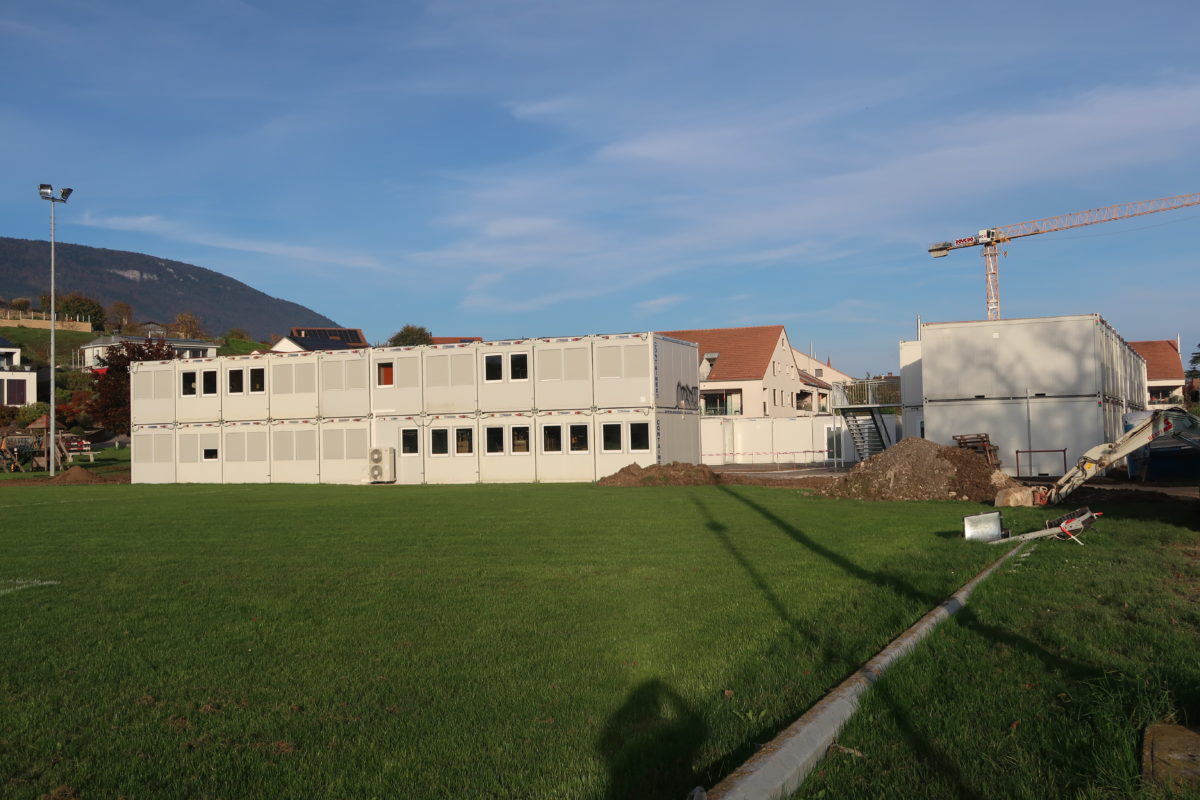 Ce nouveau collège, composé d’une soixantaine de conteneurs assemblés en trois blocs et, pour deux d’entre eux, sur deux niveaux, a été réalisé en l’espace de cinq semaines. Il aurait dû être mis en service pour la rentrée d’août 2023, mais des oppositions lors de la mise à l’enquête, puis un recours au Tribunal cantonal (voir encadré), sont à l’origine de ce report de la mise en service.
