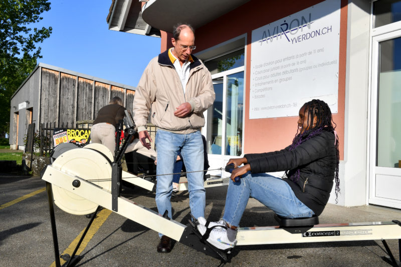 Assise sur l’un des ergomètres posés devant le local de l’Union Nautique Yverdon (UNY), Sarah (photo ci-contre), 11 ans, décompose son mouvement au son de Lady Gaga, au fil des instructions dispensées par l’un des membres du club. La jeune Lausannoise comprend vite la technique, et ses gestes deviennent de plus en plus fluides. «Voilà, maintenant, tu fais ça pendant cinq minutes», lui lance son papa. «T’es fou!? rétorque-t-elle. C’est fatigant…»