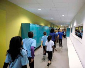6 novembre 2014La nouvelle aile du collège Verneret a été inaugurée hier. L’occasion, pour les élèves, le corps enseignant et les politiciens de partager une soirée dans des couloirs colorés.