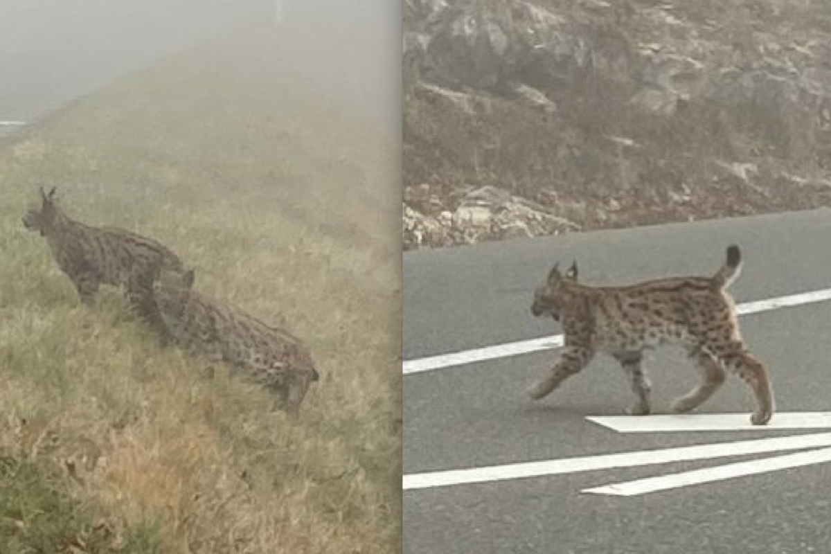 Sur un chemin de traverse, je vois du mouvement à droite, sur le bas côté. Ils sont là, tranquilles, curieux, à deux-trois mètre de ma voiture : un couple de lynx, majestueux, au pelage dense et coloré.