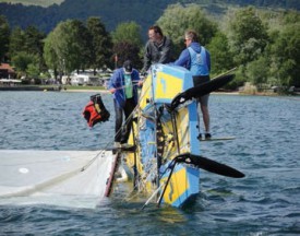 Le M2 Speedtour vivait, à l’occasion du Bol d’Or, sa dernière régate sur le lac de Neuchâtel, avant de rejoindre le Léman. Christophe Péclard et ses équipiers -les frères Loïc et Yannick Preitner et Alexandre Massard- sur Team Seven, ont pulvérisé le record du nouveau parcours mis en place en 2013, en trois heures et cinq minutes. «Nous avons pris un bon départ. Les nombreuses petites bascules de vent ont rendu cette régate difficile. Il fallait être très attentif. Le vent nous a joué des tours et plusieurs concurrents nous ont passé devant au portant. Nous nous sommes accrochés et avons tiré les bons bords. Peu avant Neuchâtel, nous avons pris le commandement de la flotte et ne l’avons plus lâché jusqu’à l’arrivée», commentait le skipper à l’arrivée.