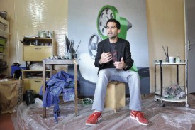 A l’issue d’un véritable labyrinthe, nous franchissons enfin le pallier de la porte. Niché au coeur de la gare de Vallorbe, l’atelier de Sébastien Mettraux laisse transparaître une grande partie du caractère du personnage, tout comme de sa vie. Des pinceaux, du café, un endroit où s’assoupir et des jouets d’enfant apparaissent, petit à petit, derrière les portes. Polyvalent et passionné, l’artiste trentenaire est satisfait de son dernier succès: une bourse culturelle de la Fondation Leenaards.