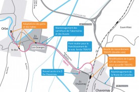 A la sortie de Chavornay, direction Orbe, des gabarits signalent l’emprise qu’occuperait le futur passage supérieur destiné au franchissement du projet de tracé. Haut de huit mètres, il assurera aussi la desserte de la zone industrielle, via une rampe avec préselection. Mais les opposants notent que cet ouvrage aboutira dans le faisceau des voies ferrées de l’entreprise Terco. Selon eux, leur traversée par les camions peut s’avérer une source d’insécurité routière, en raison des manœuvres des convois et en l’absence de passages à niveaux à barrières. Ils s’inquiètent également du pourcentage de la rampe. En hiver, elle leur apparaît dangereuse, car les conditions de route deviennent plus difficiles à cause de la neige ou du verglas. Enfin, ils dénoncent l’impact paysager du pont. Il irait aggraver,à 1200 mètres d’écart, celui produit par le «disgracieux» passage supérieur franchissant la ligne Lausanne/Yverdon-les-Bains.