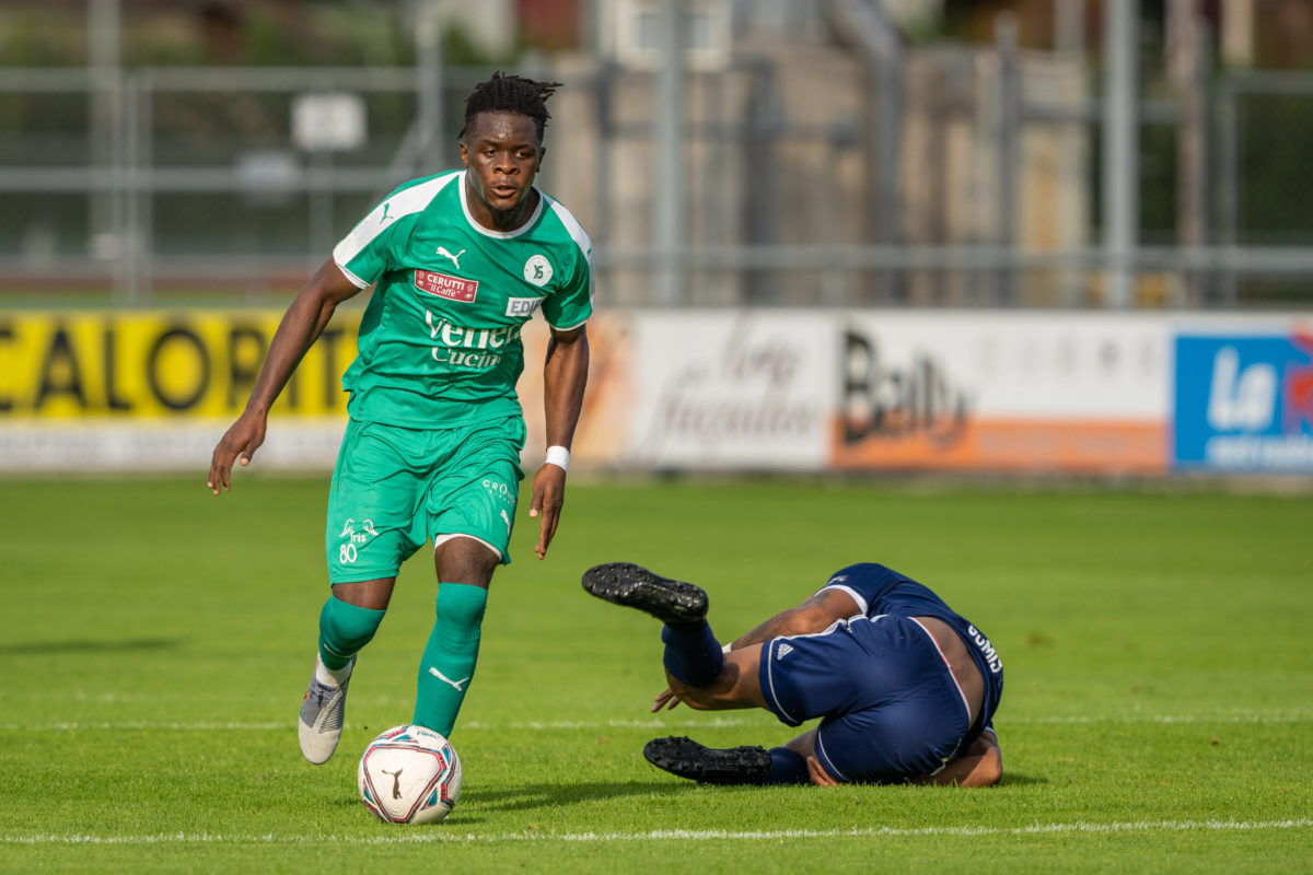 Sergio Cortelezzi et lui sont sortis en même temps à la 72e et les applaudissements des 578 spectateurs se sont donc confondus entre les deux hommes. Si l’Uruguayen et son triplé avaient bien mérité une ovation, la performance globale de Marculino Ninte en valait également une. L’ailier bissau-guinéen et portugais de 23 ans a régalé le public grâce à ses accélérations et ses dribbles et, d’une certaine manière, il s’inscrit dans la lignée historique des ailiers de débordements spectaculaires dont le Nord vaudois raffole. Il n’a pas encore l’aura d’un Jean-Michel Tchouga, d’un Enilton ou d’un Khaled Gourmi, pour ne citer que ces trois-là, mais Marculino Ninte dégage quelque chose de spécial et fait bel et bien partie de la caste des joueurs qui font se lever un stade. Il ne fait pas encore tout juste, sinon il ne serait d’ailleurs déjà plus en Promotion League, mais ses feintes de corps et, surtout, son premier pas en sortie de dribble en font un atout de choix pour Jean-Michel Aeby.