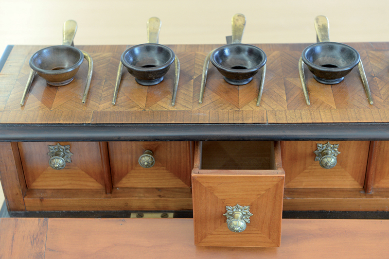 Les balles dorées étaient glissées dans un de ces petits trous, en fonction du conseiller pour lequel on voulait voter. La partie du scrutin avec les tiroirs n’était accessible qu’avec une clé, pour que l’issue de l’élection reste secrète jusqu’au bout.