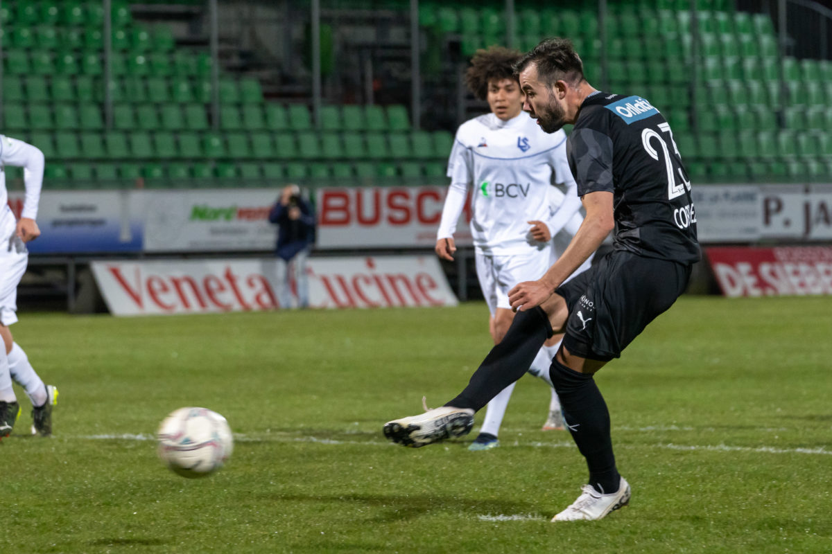 Bien que rapidement mené au score, Yverdon Sport a nettement dominé la première mi-temps. Les occasions ont été nombreuses, mais c’est sur un penalty que l’égalisation est venue. Sergio Cortelezzi, qui avait manqué un penalty samedi dernier contre Köniz, a cette fois refait le plein de confiance dans l’exercice.