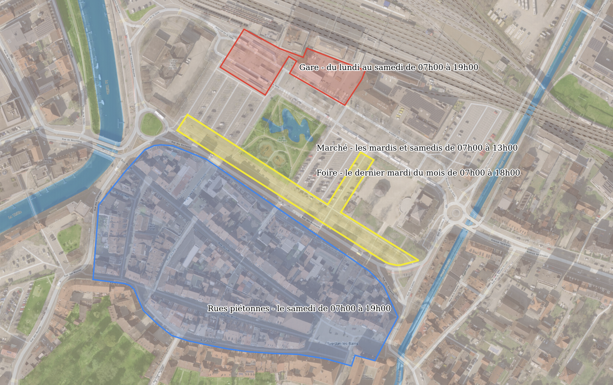 Le plan annexé offre une vue d’ensemble des secteurs concernés et des horaires durant lesquels le port du masque est désormais obligatoire.